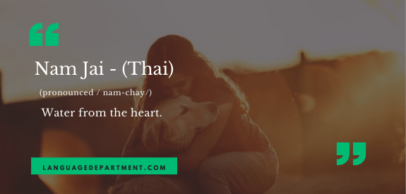 Nam Jai is used to describe acts of kindness and generosity with the purest intentions.  In other words, being kind for no other reason than the sake of kindness.  This could be giving an unexpected compliment to a loved one or lending a hand when the occasion arises.